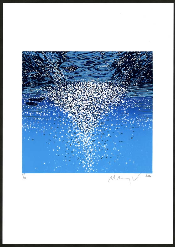 Následovala práce na souborech Underwave I. a II., v nichž jsem využil své zážitky z potápění v Rudém moři. Líbil se mi pohled ode dna ke hladině v okamžiku, kdy se po ní přehnala vlna. Ta vytvořila nádherné struktury, objevilo se hodně bublin, prosvítaly paprsky slunce. Téma pro mě bylo natolik výtvarně zajímavé a krásné, až jsem pochopil, že jen tři grafiky budou málo. Proto rovnou dva soubory.