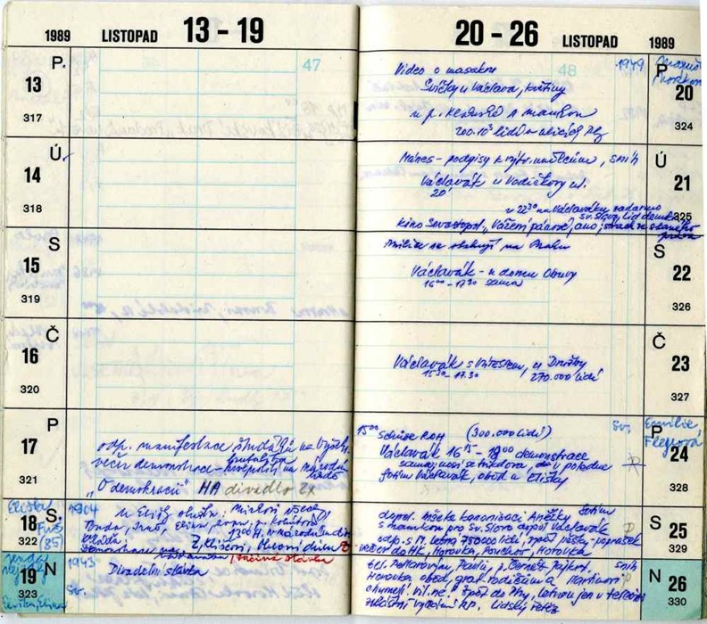 Diář z listopadu 1989