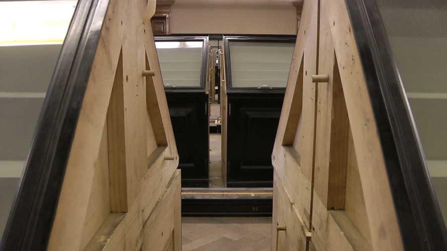 Rozpojit je nebylo vůbec jednoduché. Vitríny, ač na pohled stejné, byly vyrobeny v několika dílnách a jejich provedení se lišilo. Každá řada vitrín byla proto malým oříškem.