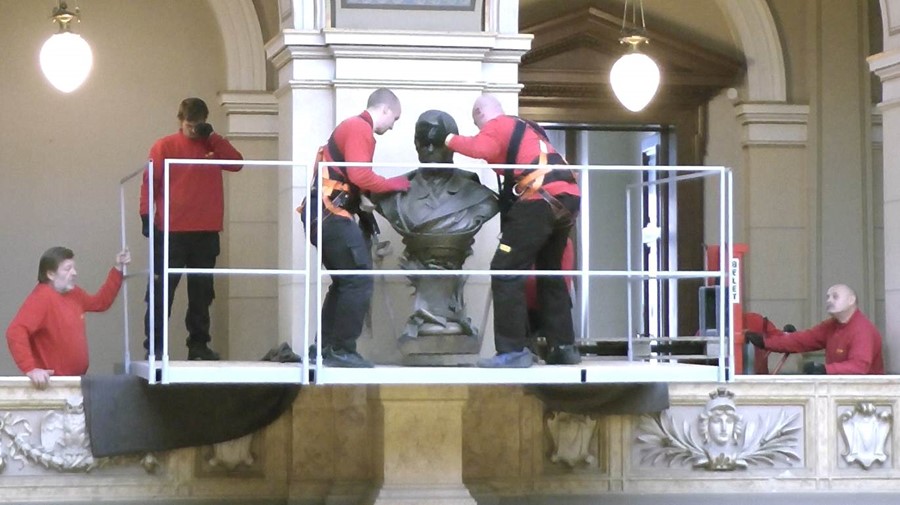 Deinstalují se i busty na ochozu druhého patra, a to s pomocí speciálně vyrobené lávky se závažím, která zajistí přístup i do těžko dostupných míst.