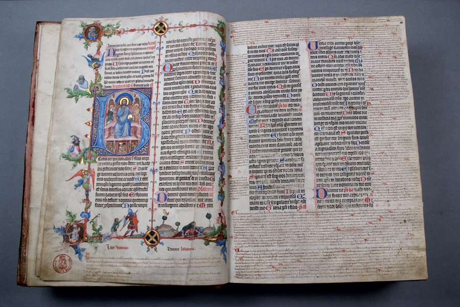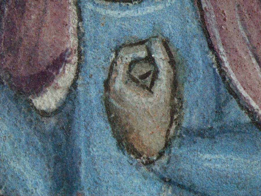 Zavraždění sv. Václava v iniciále A, detail modrého pláště tvořeného ultramarinem