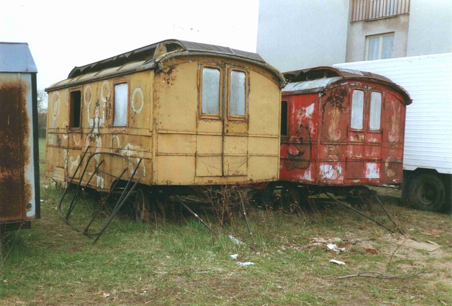 Dvě silně devastované historické světlíkové maringotky celodřevěné konstrukce s loukoťovými koly(odhad výroby kolem 1910), kovová táhla. Odstaveno na travnaté ploše u ubytovny zimoviště, fotografie z roku 1992