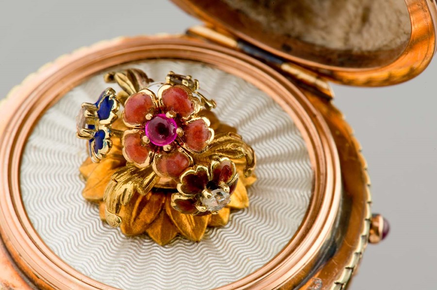 Schránka na Fabergého vejce. Na výstavu Peníze do Národního muzea zapůjčilo Uměleckoprůmyslové museum v Praze