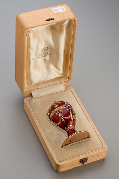 Pravděpodobně novodobá kopie Fabergého vejce. Na výstavu Peníze do Národního muzea zapůjčilo Uměleckoprůmyslové museum v Praze