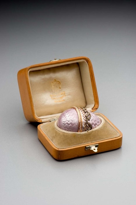 Fabergého vejce, Michail Evlampievič Perchin, fa Fabergé, konec 19. století, Rusko. Na výstavu Peníze do Národního muzea zapůjčilo Uměleckoprůmyslové museum v Praze