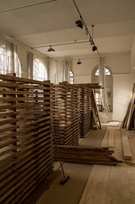 Příprava výstavy Venkov – stavba stylizovaného venkovského stavení