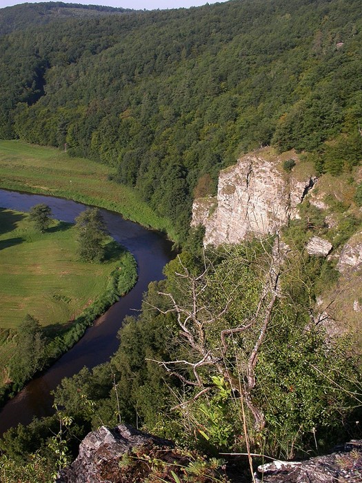 Vraní skála. Jedna z přírodně nejcennějších a zároveň krajinářsky nejkrásnějších lokalit v Podyjí. Skalní stepi jsou zde biotopem nejen výše vyobrazené blýskavky skalní, ale i dalších více než 440 dosud zjištěných druhů motýlů.