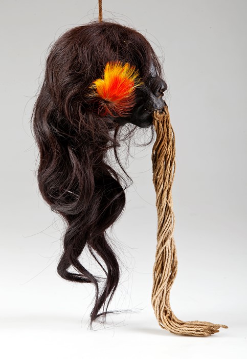 Preparovaná lidská hlava zvaná tsantsa Jívarové, Ekvádor, asi 1. polovina 20. století (zdroj: Národní muzeum)