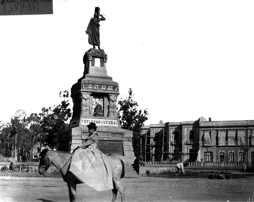 Vlasta na koni u pomníku v hlavním městě Mexika