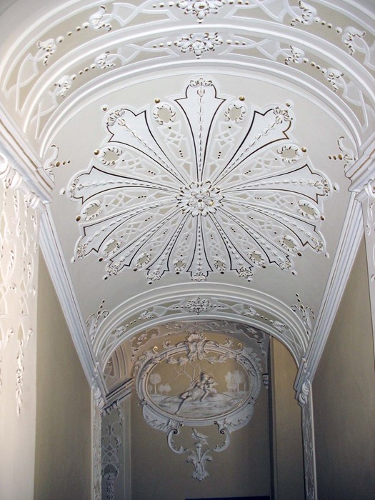 Barokní štuková výzdoba schodiště kunratického zámku