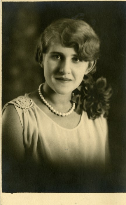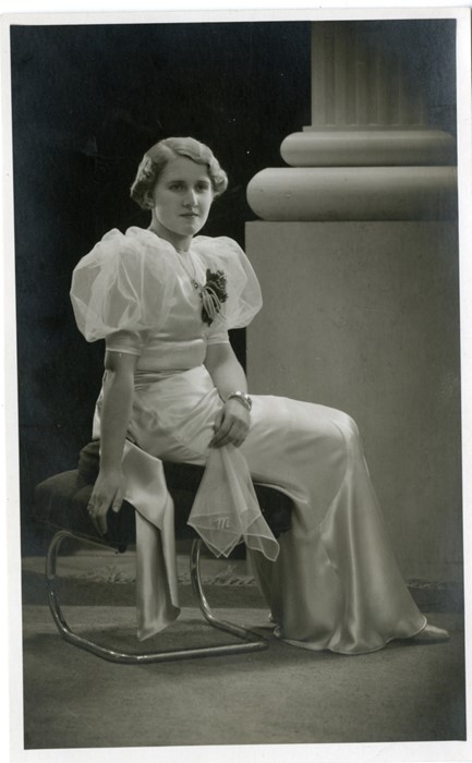 Marie Spejchalová v šatech na první věneček v tanečních, 1931 (zdroj: Národní muzeum)