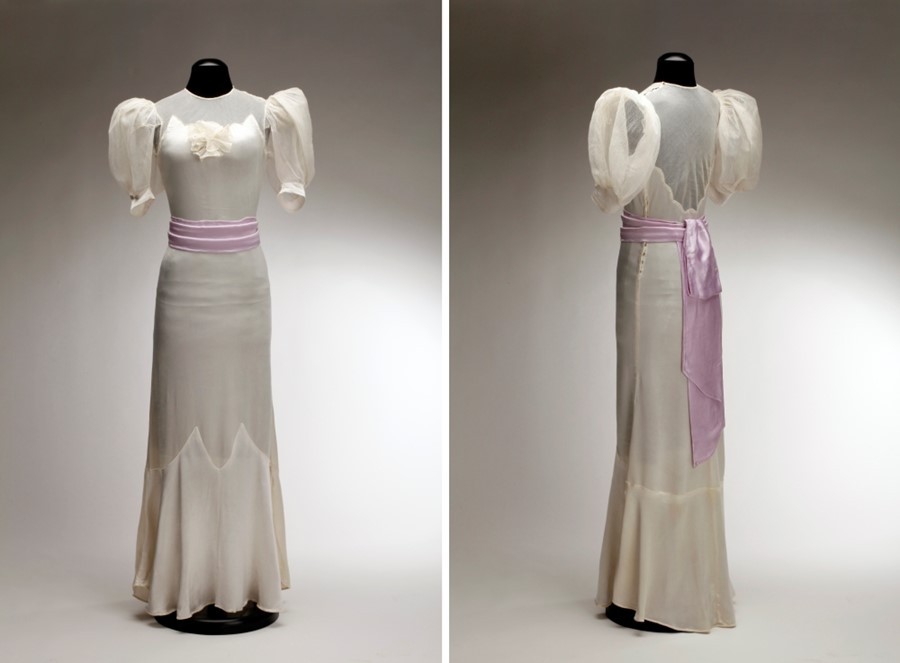 Plesové šaty Marie Spejchalové, bílý hedvábný satén a tyl, 1936 (zdroj: Národní muzeum)