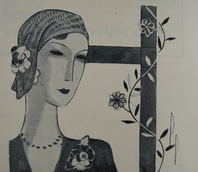 „Květiny, kam se podíváš.“ na klobouku, na šatech i v zahradě, 1930.
