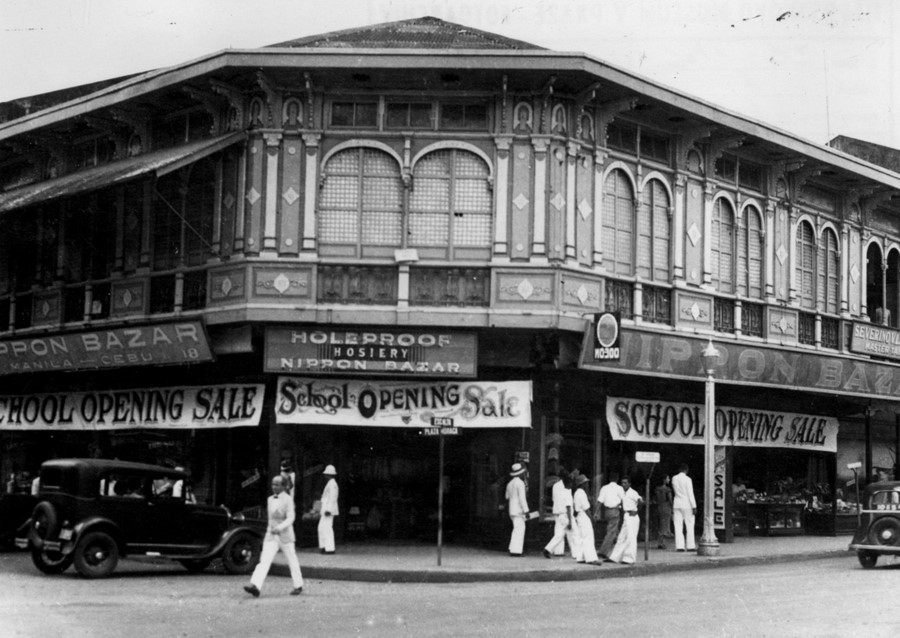 02 As I 5753 Dřevěná budova bazaru Nippon s poutačem „School Openig Sale“, Manila, 1934
