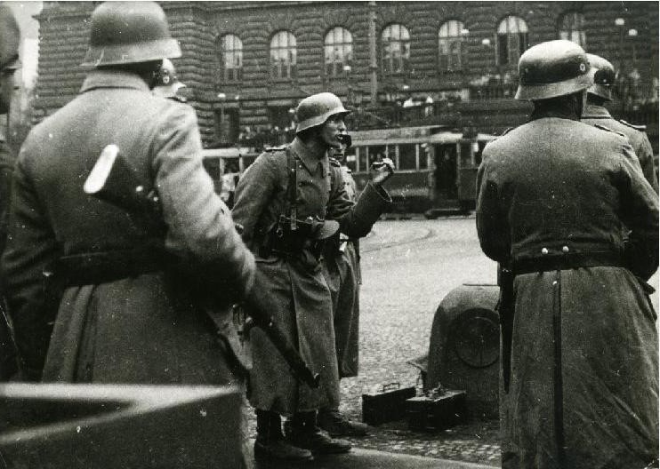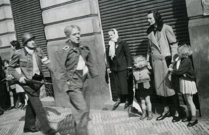 Zajatí němečtí vojáci i civilisté se museli po ukončení povstání podílet na likvidaci barikád a úklidu válečných škod v Praze. 9. 5. 1945