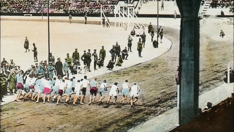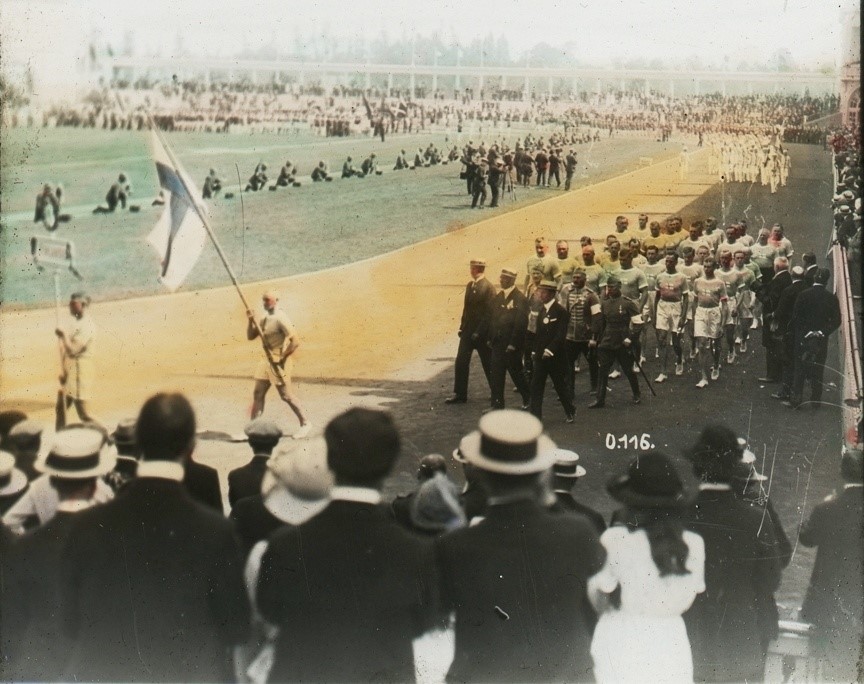 Slavnostní nástup. Švédské gymnastky. Zdroj: Národní muzeum