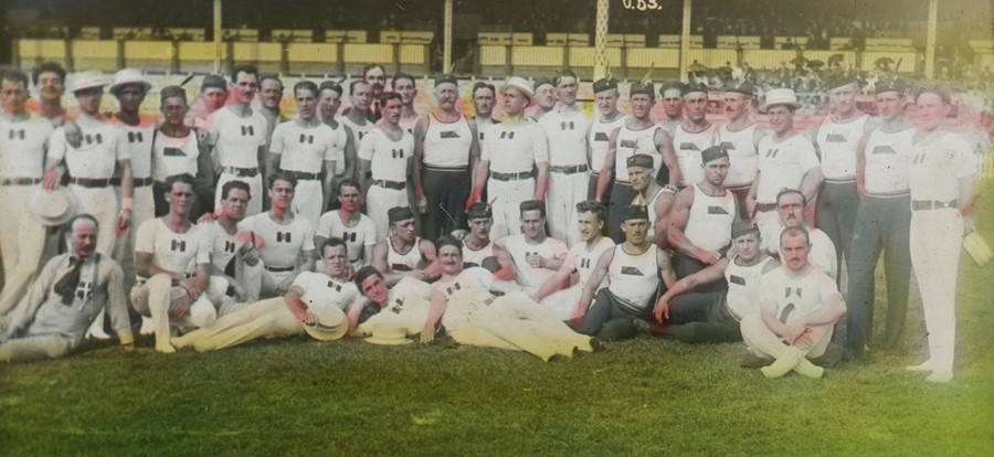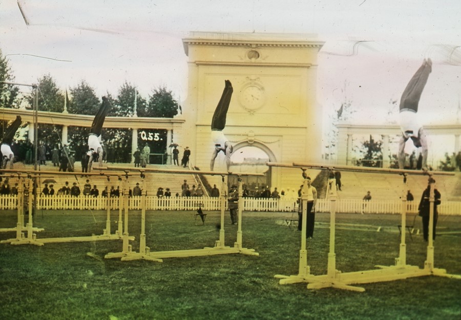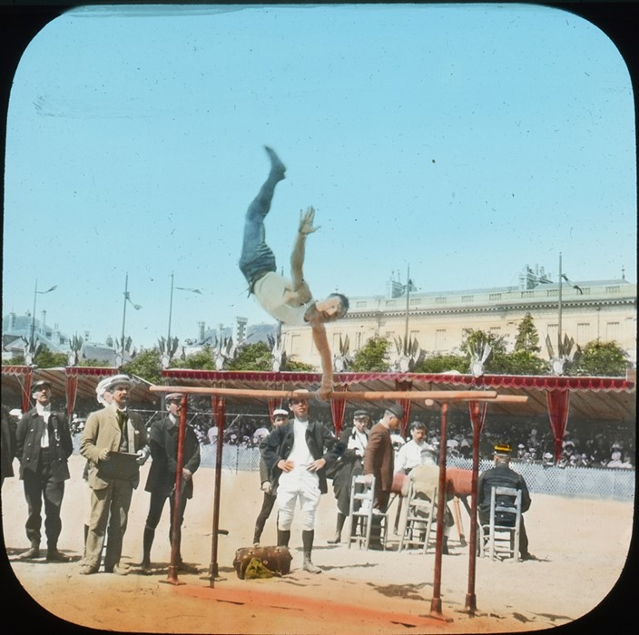 Frank Foss při skoku o tyči. Zdroj: Národní muzeum
