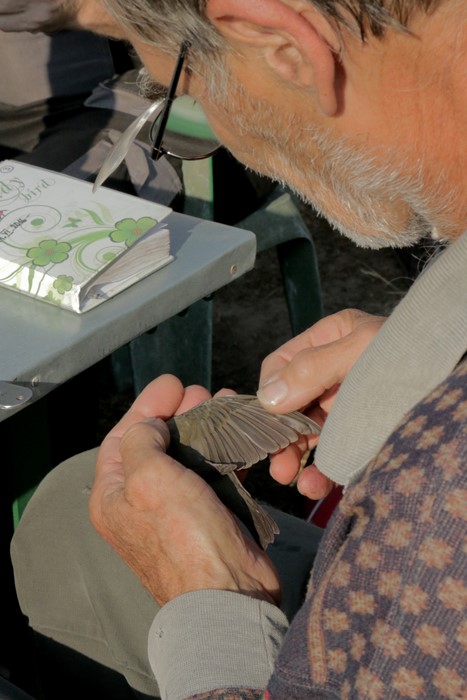 Kroužkovatelé odchycené ptáky zkontrolují a podle různých znaků mohou určit i jejich stáří. Zdroj: Národní muzeum