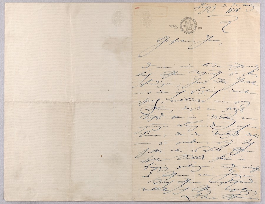 Pianistka Clara Schumannová Smetanovi 12. 3. 1856, NM-MBS S 217/862