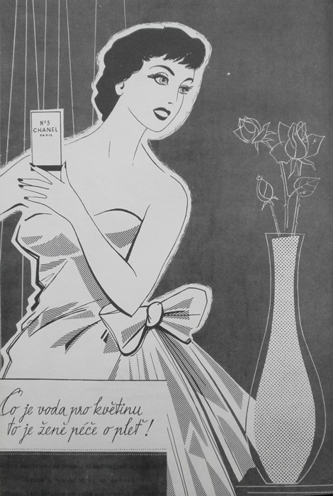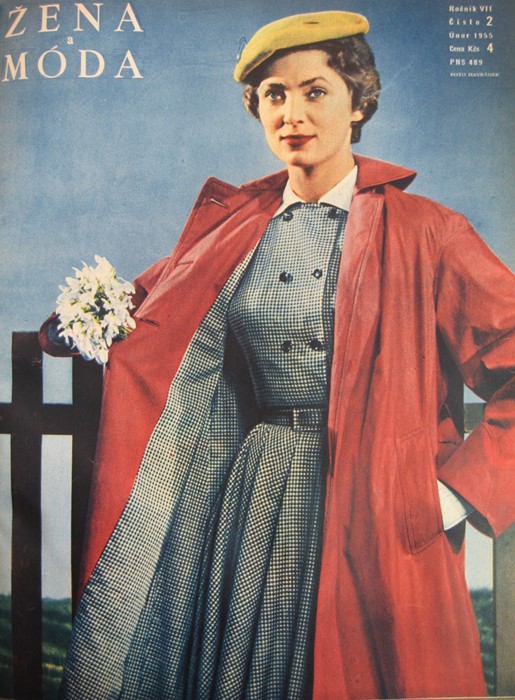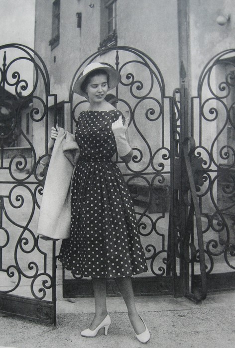 Oblíbenými vzory na šatech byly puntíky, květiny a kostky.