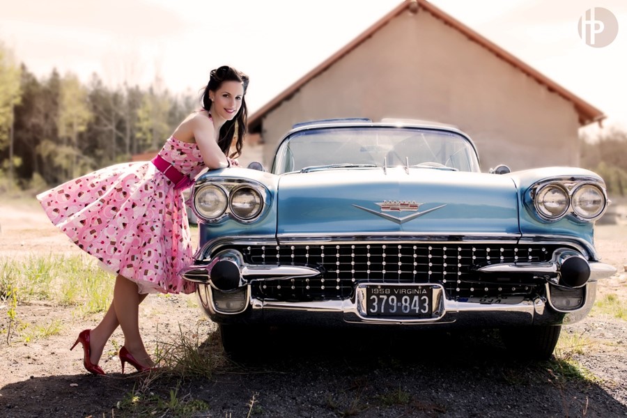 Dívka v retro modelu ve stylu pin-up, Lady AnnaHell, 2016. Styling: Lady Bow.