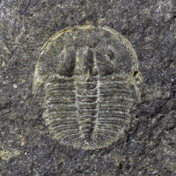Rané vývojové (protaspidní) stádium trilobita druhu Eccaparadoxides pusillus. Jedinec je dlouhý asi 1,2 mm a pochází z kambrických hornin v okolí obce Skryje na Křivoklátsku.