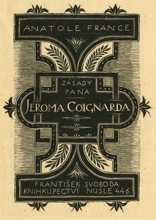 Nátisk obálky. France, Anatole: Zásady pana Jeroma Coignarda. Praha: František Svoboda, 1922.