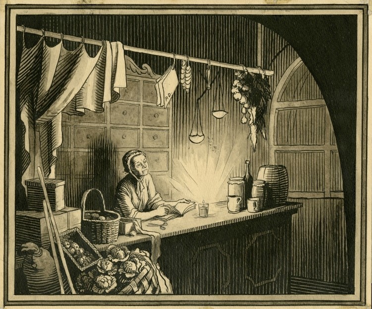 Ilustrace k povídce Týden v tichém domě. Neruda, Jan: Povídky malostranské. Praha: Fr. Borový, 1927