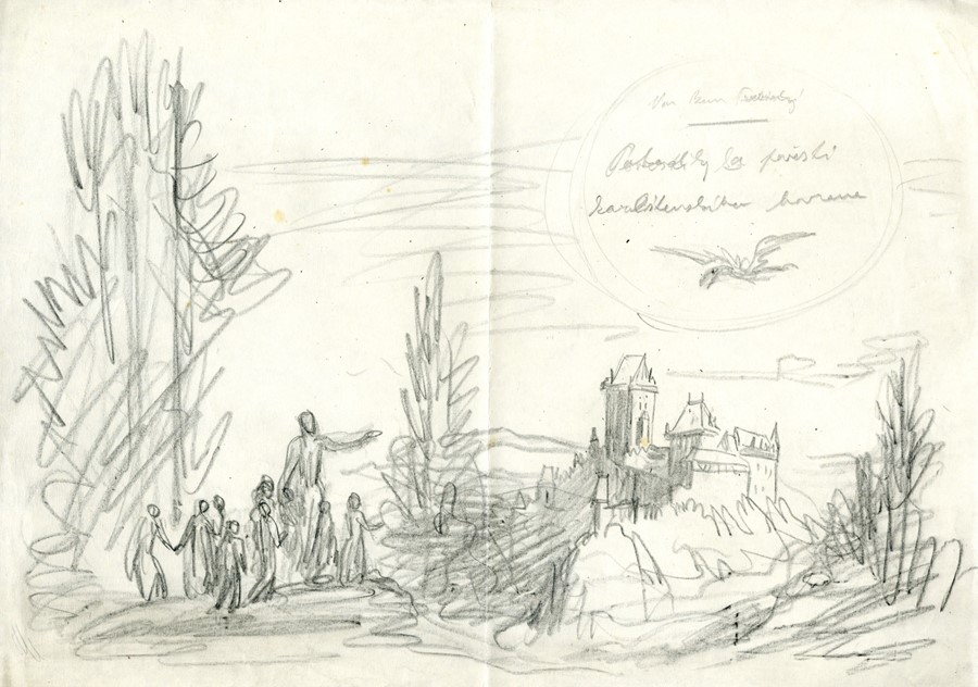 Studie k přebalu. Beneš Třebízský, Václav: Pohádky a pověsti karlštejnského havrana. Praha: Vyšehrad, 1950