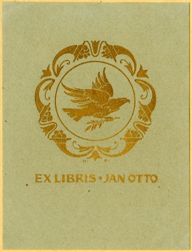 Exlibris od Huga Boettingera pro nakladatele Jana Ottu. Zinkografie z roku 1915.