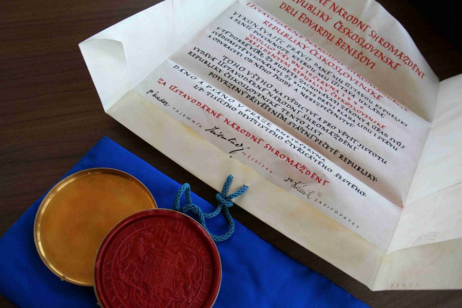 Obal listiny z roku 1935 (prezident Edvard Beneš)