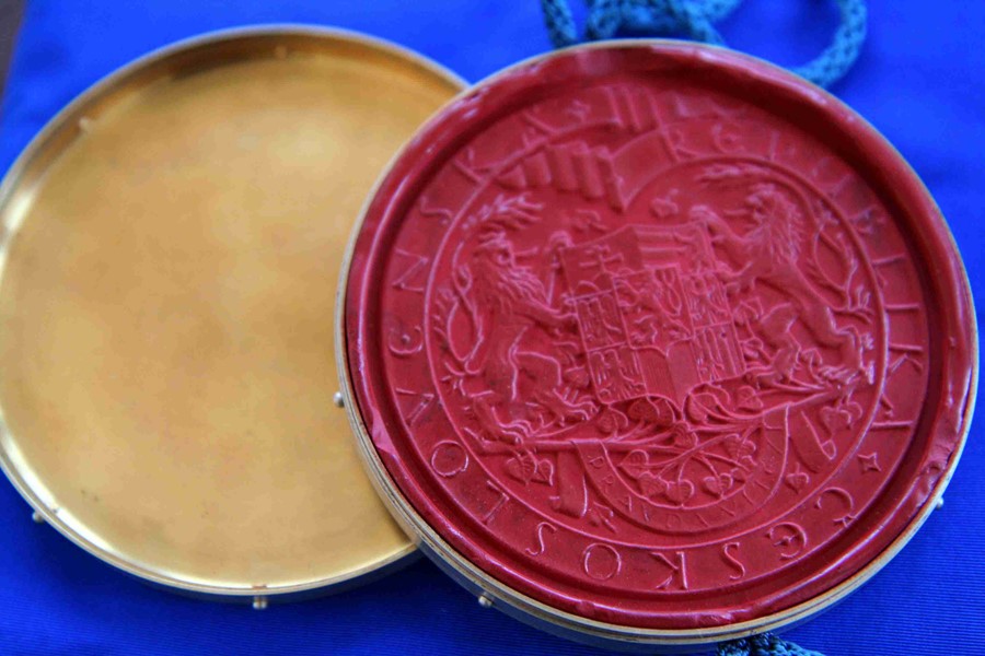 Pečeť v kovovém pouzdře (prezident Edvard Beneš, 1946)