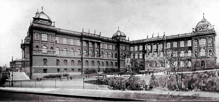 Návrh Jana Kouly na přístavbu křídla k Historické budově do prostoru Čelakovských sadů (1912-13)