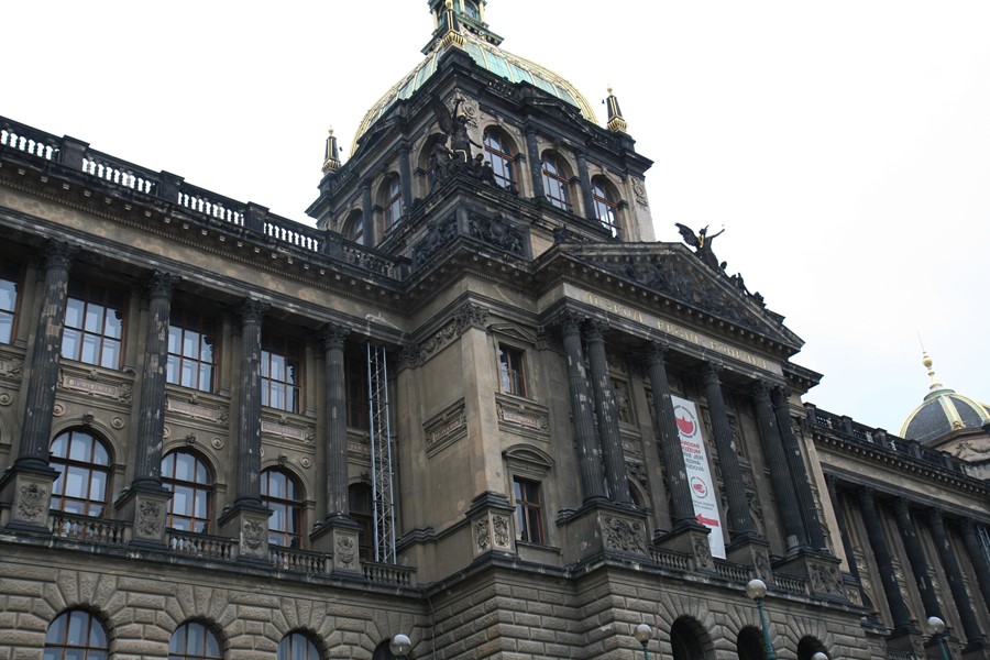 Stopy po střelbě jsou na Historické budově Národního muzea patrné dodnes.
