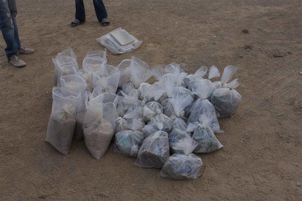 Cílem terénních prací bylo především zaměřit a zdokumentovat nedávno objevená ložiska a na základě naměřených strukturních dat se pokusit objevit nové potenciální lokality. Abychom mohli získat co nejvíce informací o mineralogii navštívených lokalit, bylo zapotřebí na každé z nich odebrat několik kilogramů vzorků, které v současné době putují v kontejneru na lodi směrem do České republiky, kde budou podrobeny laboratornímu výzkumu. Vzhledem k tomu, že jsme navštívili zhruba 30 lokalit, dosahovala celková hmotnost vzorků několika set kilogramů.